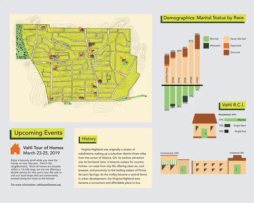 The Atlanta Beltline is a transformational project that involves the redevelopment of a former railway corridor that encircles the core of Atlanta, Georgia. Currently under various stages of development, it promises to be a vital hub for the communities it touches, including the Virginia Highland neighborhood. This project aimed to create not only a map detailing essential information about the Virginia Highland neighborhood but also an interactive activity designed to engage visitors or potential residents of the area.