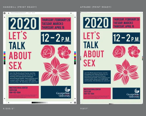 Given the seriousness and sensitivity of the subject, the design used to advertise the event would have to reflect that. Following university guidelines and direction of the departments, I designed a piece focused on the name of the seminar and supplemented the message with understated imagery. To make it more eye-catching, I used bold colors and type, while still keeping the design respectful. The departments requested print, digital and social media to best promote the event.
